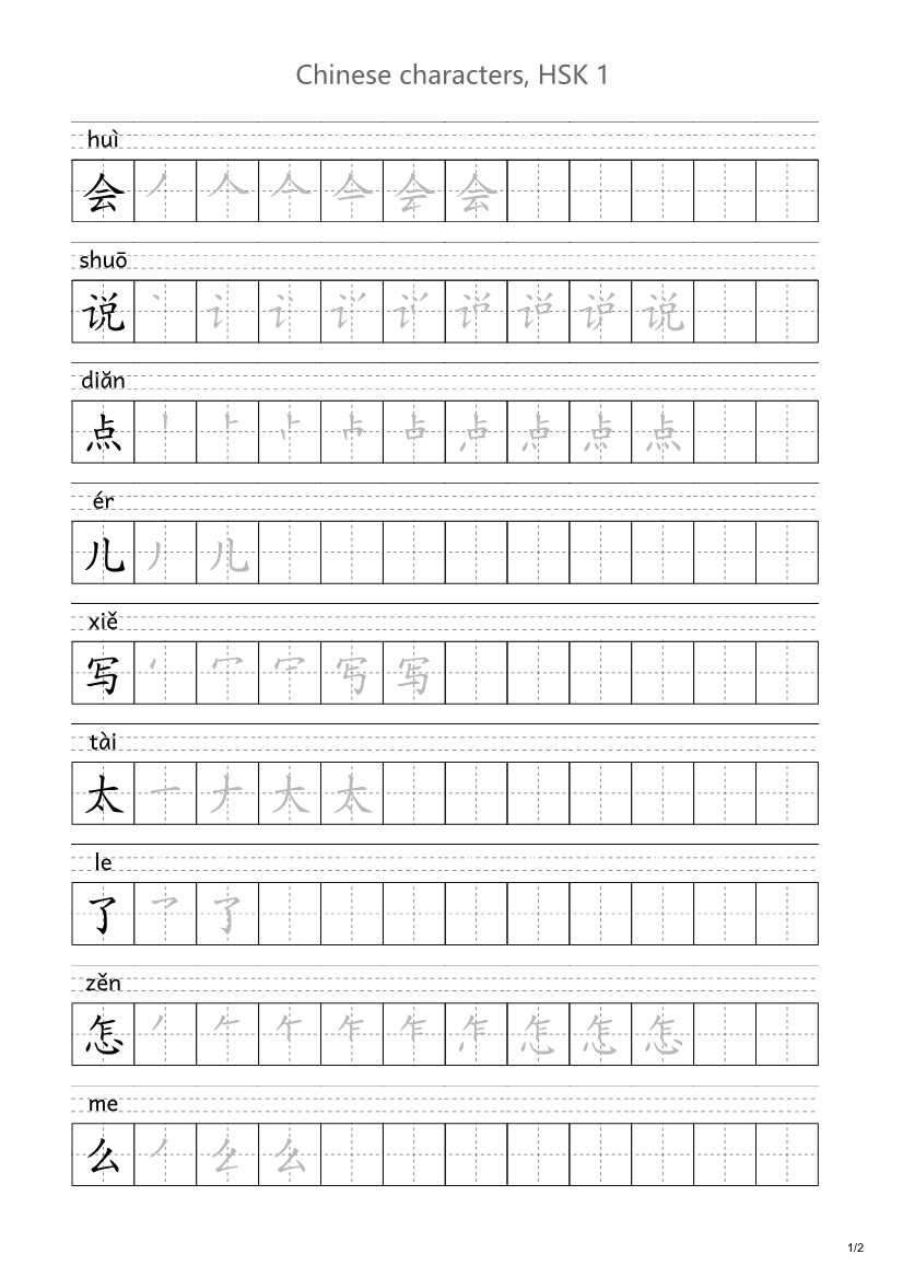 写汉字 Xiě hànzì Writing Chinese characters (optional)