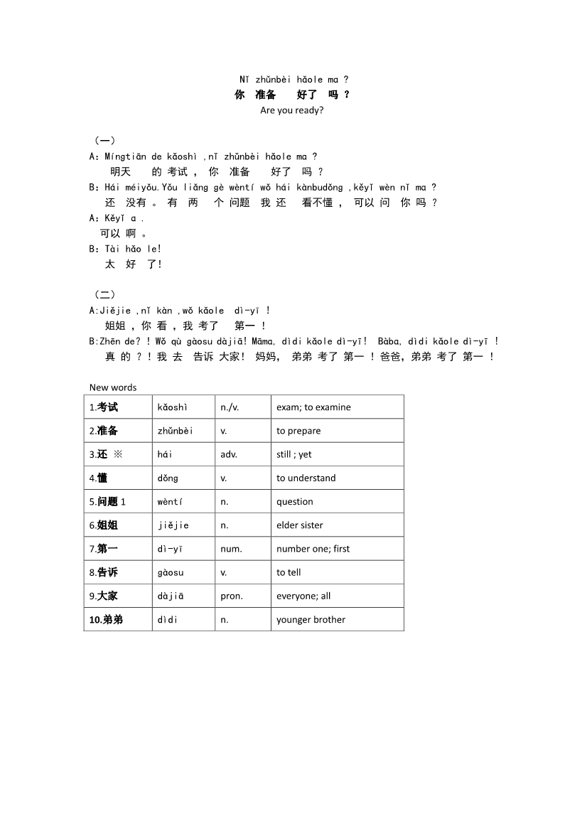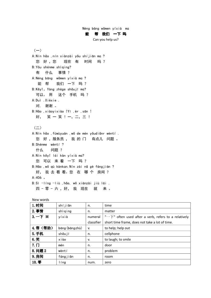 第10课 (Dialogue and Vocabulary)